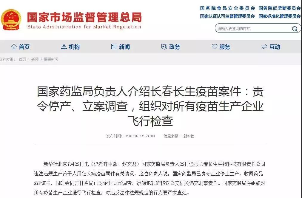 长春长生“疫苗事件”后,中央作出重要指示指出,立即调查事实真相,一查到底,严肃问责,依法从严处理。习总书记强调,确保药品安全是各级党委和政府义不容辞之责,要以猛药去疴、刮骨疗毒的决心,完善我国疫苗管理体制,坚决守住安全底线,全力保障群众切身利益和社会安全稳定大局。