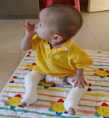适用于出生后7~9个月月龄的宝宝。如果在9~28个月之间开始治疗,仍可矫正全部或大部分畸形。