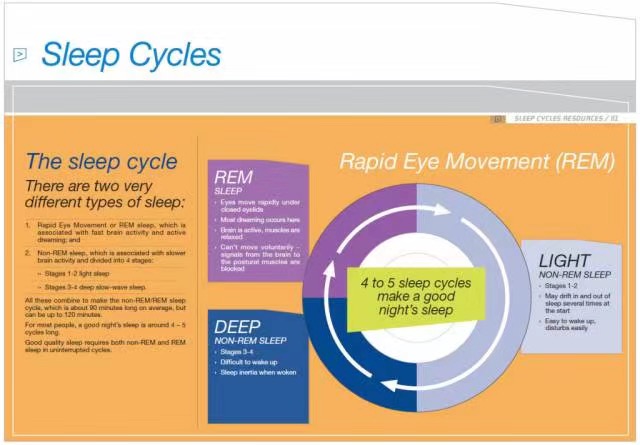 睡眠是由两种基础状态组成,即“快速眼动睡眠”(REM)和“非快速眼动睡眠”(NREM),两者交替循环进行。二者以是否有眼球阵发性快速运动及不同的脑电波特征相区别。