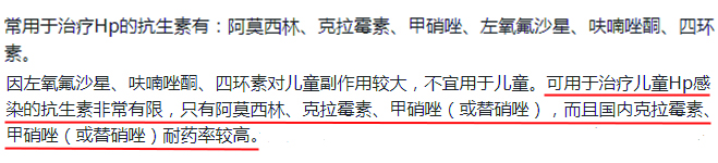 (4)可用于儿童幽门螺杆菌治疗的药物有限