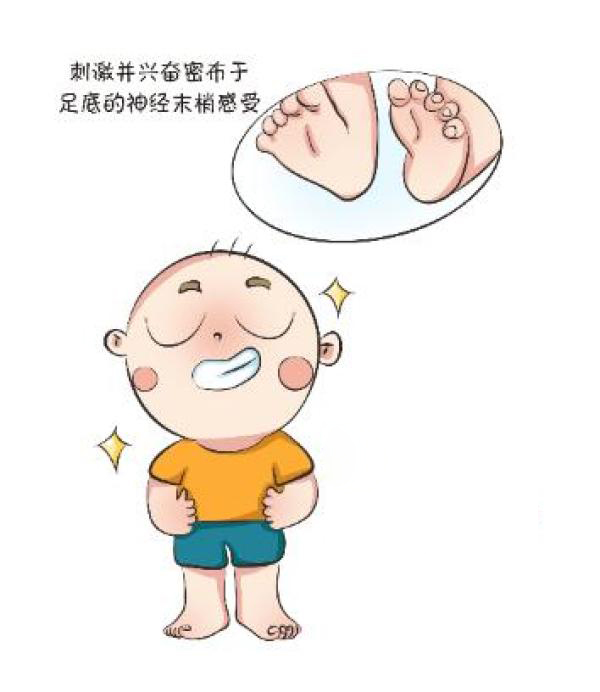 宝宝的双脚分布着丰富的神经末梢,是重要的触觉感受部位,光脚时增加脚掌的触觉感受。