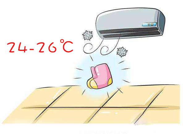 如果宝宝是光脚的,家长们就要注意把控空调的温度,不要让空调的风口直接对着宝宝吹。注意温度控制在 24°c~26°c。