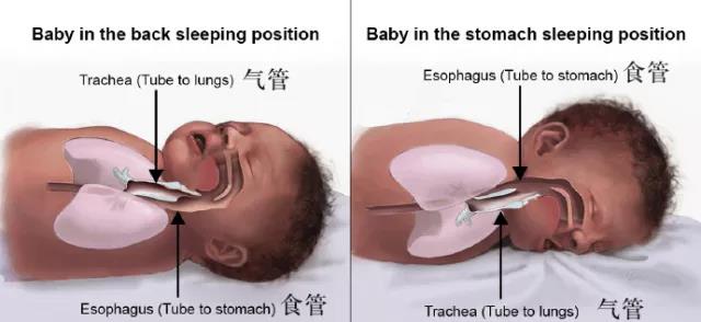 在我们习惯性思维中,仰睡的宝宝如果发生溢奶,似乎特别容易呛奶,导致窒息。但是,解剖学告诉了我们不一样的答案:仰睡时,宝宝因返流后回流导致窒息的可能性最低。