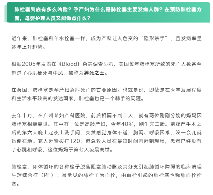 肺栓塞再夺产妇生命,预防下肢静脉血栓为什么是母婴护理要点?